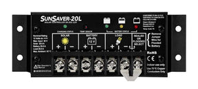 This Morningstar Sunsaver 20L solar charge controller is part of the third generation of SunSaver charge controllers.